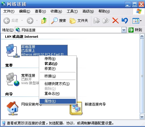 第二步:点击“本地连接” 右键“属性”。