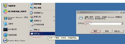 1、开始-运行,输入CMD,确定。