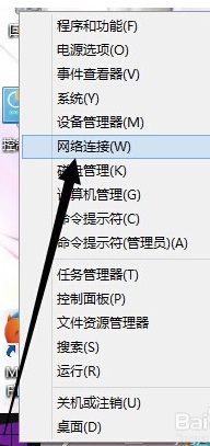 第一步:右键开始菜单图标,从上面找到【网络连接】点击打开。