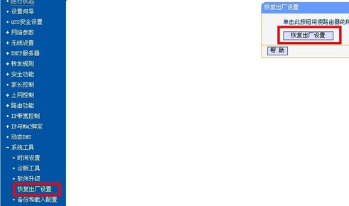 5、在界面上点击“恢复出厂设置”的按钮,这样路由器就复位了。